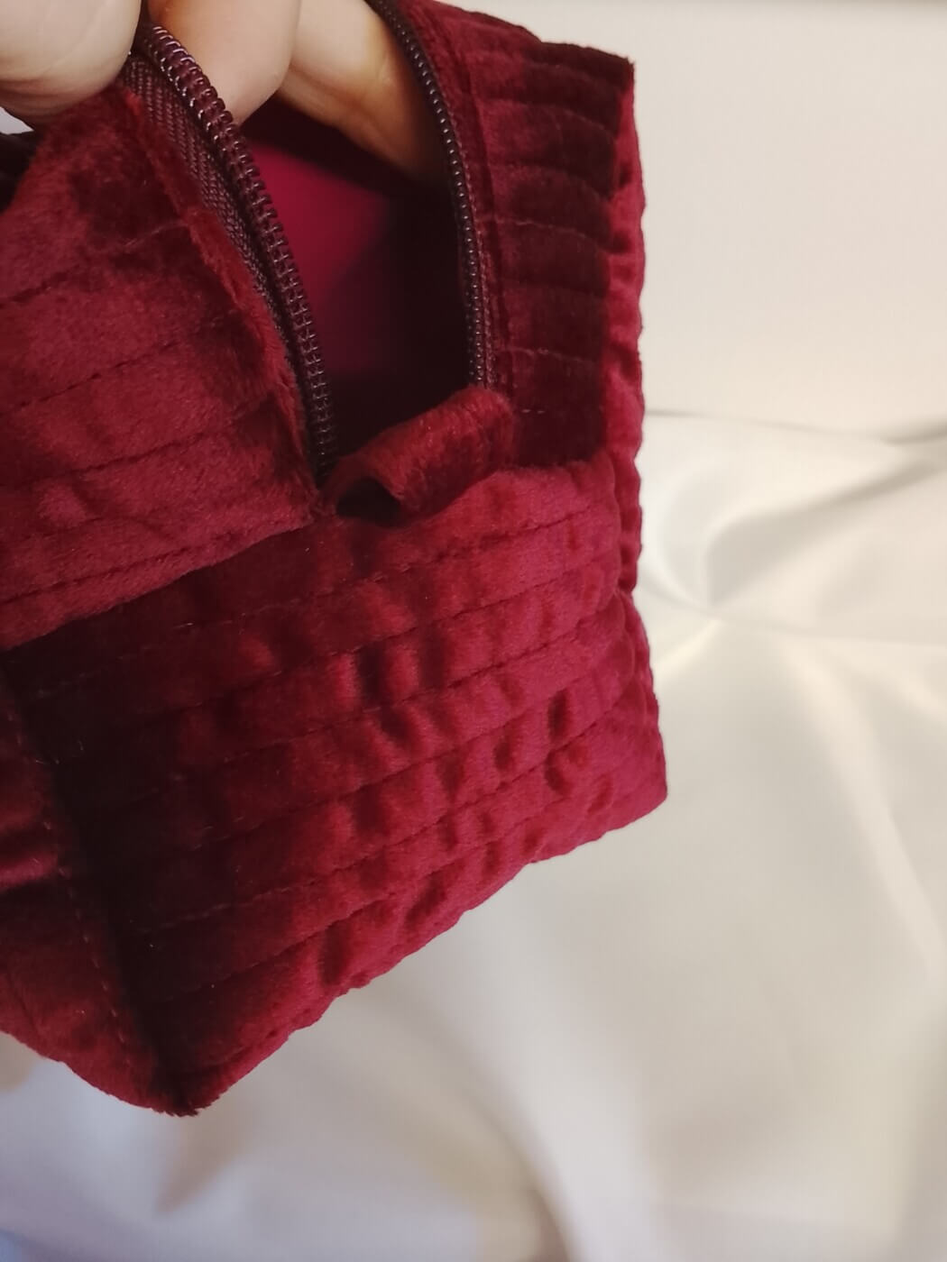 Κομψό και πρακτικό χειροποίητο νεσεσέρ σε βαθύ μπορντό χρώμα, ιδανικό για καθημερινή χρήση ή ταξίδια. Με διαστάσεις 24 × 15 × 12 εκ., προσφέρει άνετο και μεγάλο εσωτερικό χώρο για καλλυντικά, προσωπικά αντικείμενα ή αξεσουάρ.